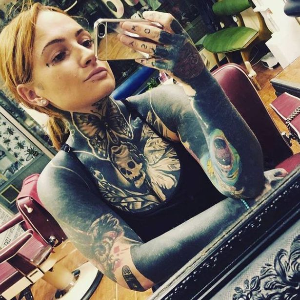 So, she gave into her tattoo obsession and got ink on her face, toes and armpits, plus ‘blackout work’ – a solid, opaque design – spanning her neck, back and arms.