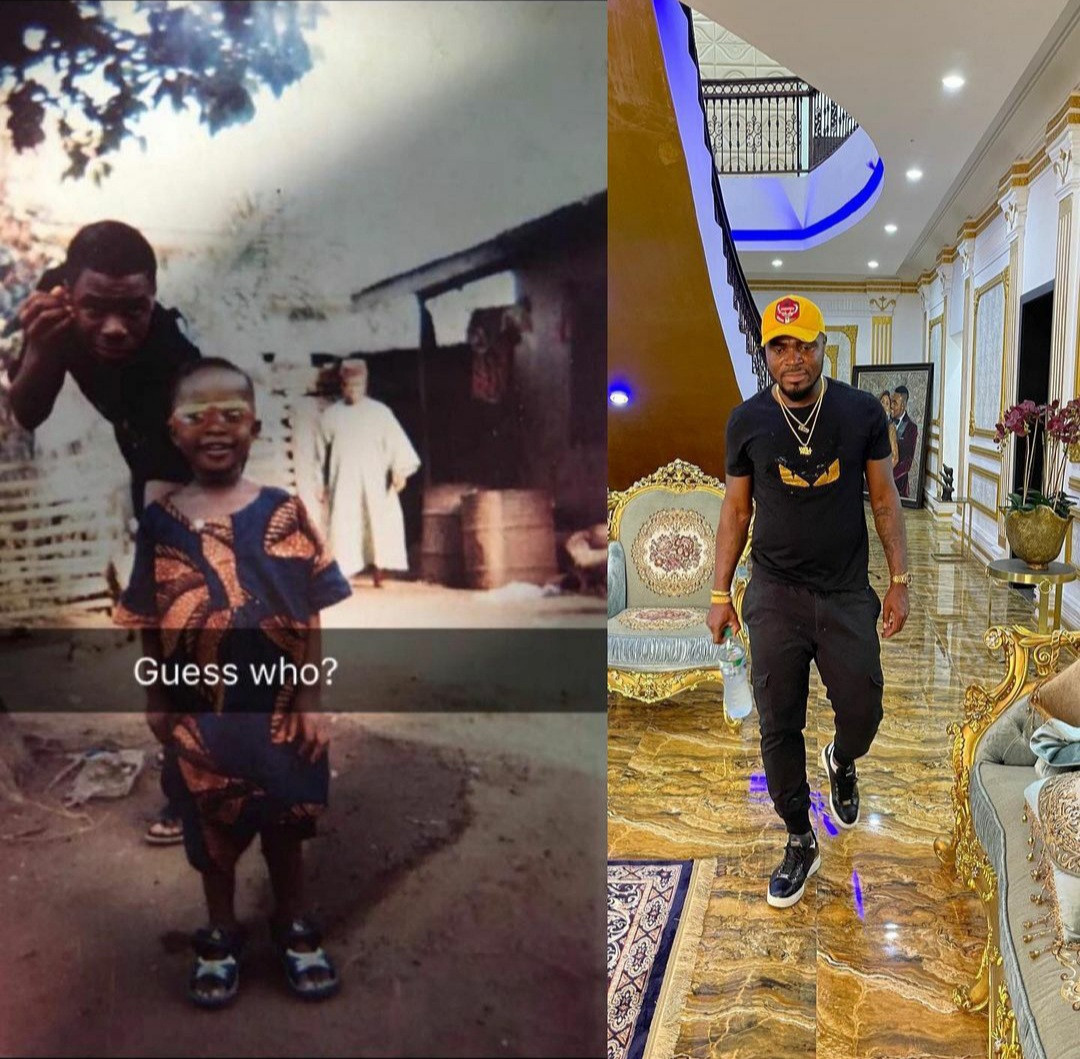 A footballer has shared a throwback photo of how he started life as a poor kid and how he worked hard to make it in life.