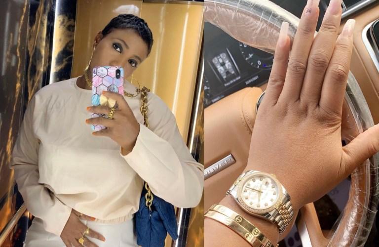 A Nigerian celebrity fashion designer is celebrating after buying a new car.