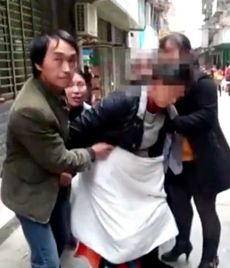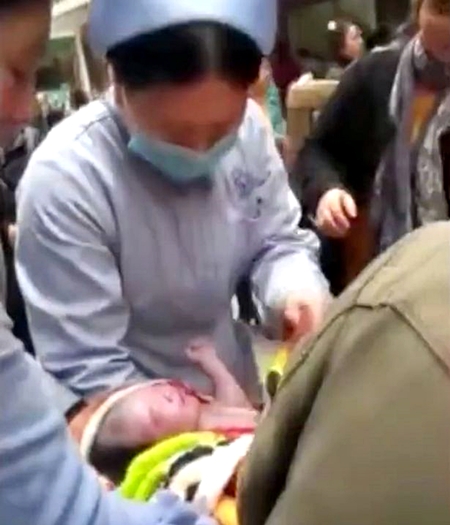 The woman, who gave birth to her baby in full view of the public, was shielded only by a sheet held up by a man who was also helping her stand. Another woman and a nurse helped her bring the baby into the world in the city of Tongren in China.