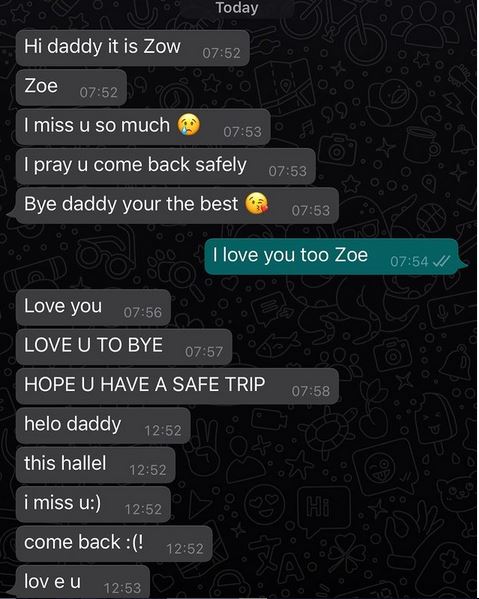 The singer shared a screenshot of heartwarming messages he got from his daughters, Zoe and Hallel after he embarked on a trip.