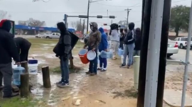 Residents of Texas in the United States have been seen lining up to fetch water from a borehole following power outage.