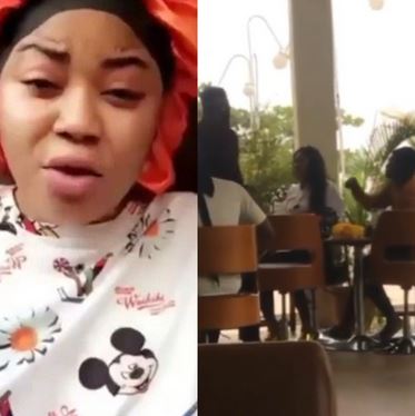 Over the weekend, the lady was at Jabi Lake Mall with a man when her fiancé walked up to them, confronted her, then snatched the wig he bought her from her head. He also took her slippers and her engagement ring and stormed off