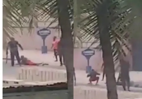In the video, four police officers were seen forcing an unknown man and woman to do frog jump in a quiet street. All of a sudden, the man was forced to lie on the road as the police officers used machete on him.