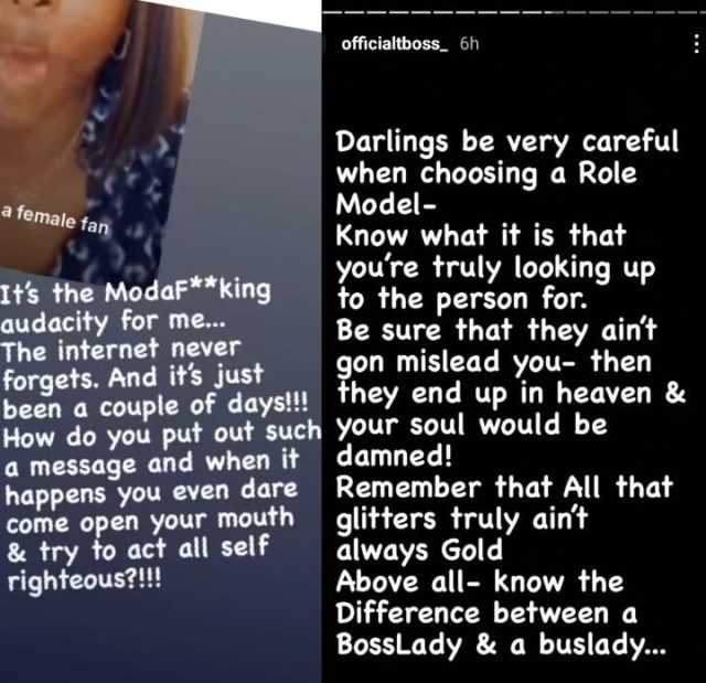 Reacting also, Tboss advised Nigerians to be careful of who they make their role model to avoid being misled.