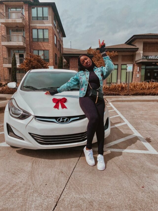 The 24-year-old shared photos of the luxury car and captioned it, “My first big girl purchase, I got myself a Hyundai Elantra 2015 limited edition for my 24th birthday.”