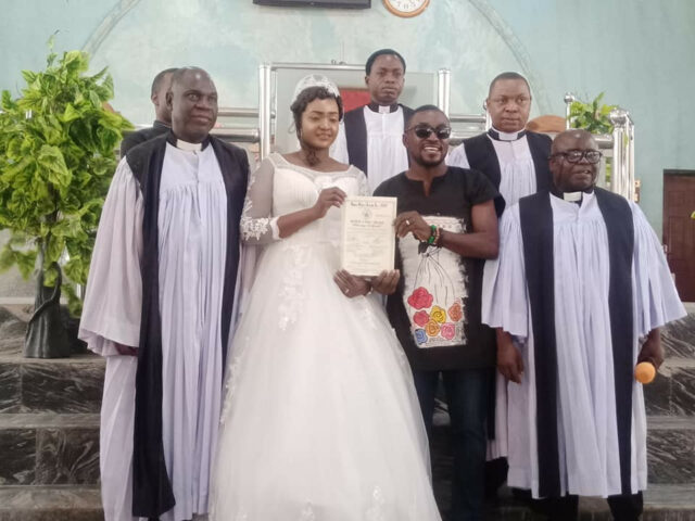 The Benue state man who tied the knot with his lover on Saturday, March 6th, 2021 at NKST Church, Makurdi, was casually dressed while his bride was decked out in a full-length white wedding gown.