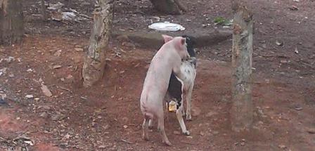 The animal kingdom might be going wild as a pig on heat was spotted doing the unthinkable with a goat.