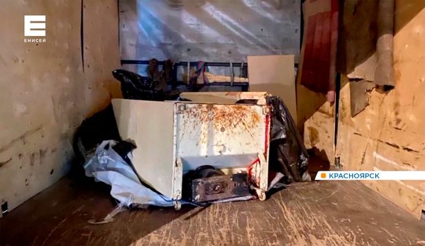 Staff from the removal company made the grisly discovery after blood began to leak from the refrigerator (Image: Enisey TV)