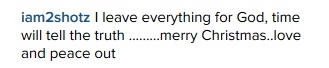 The rapper in a new Instagram message, replied his critics and said; "I leave everything for God, time will tell the truth……merry Christmas..love and peace out."