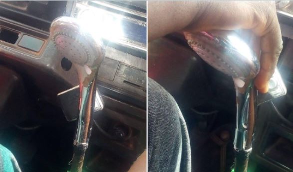 A Twitter user who revealed the development, took to the platform to express how shocked he was to see the Lagos bus driver use a shower head as gear stick.