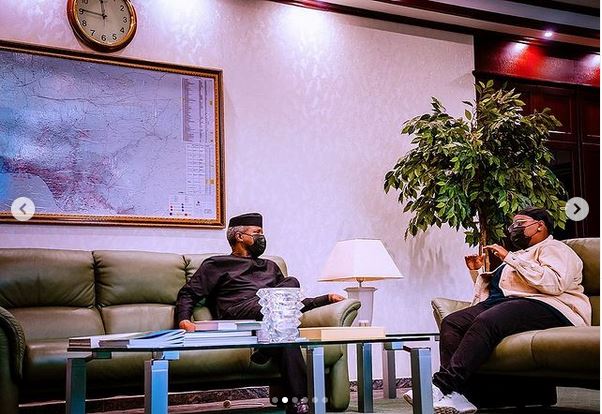 The singer took to her social media page to share some adorable photos after she paid the VP a visit in Aso Rock.
