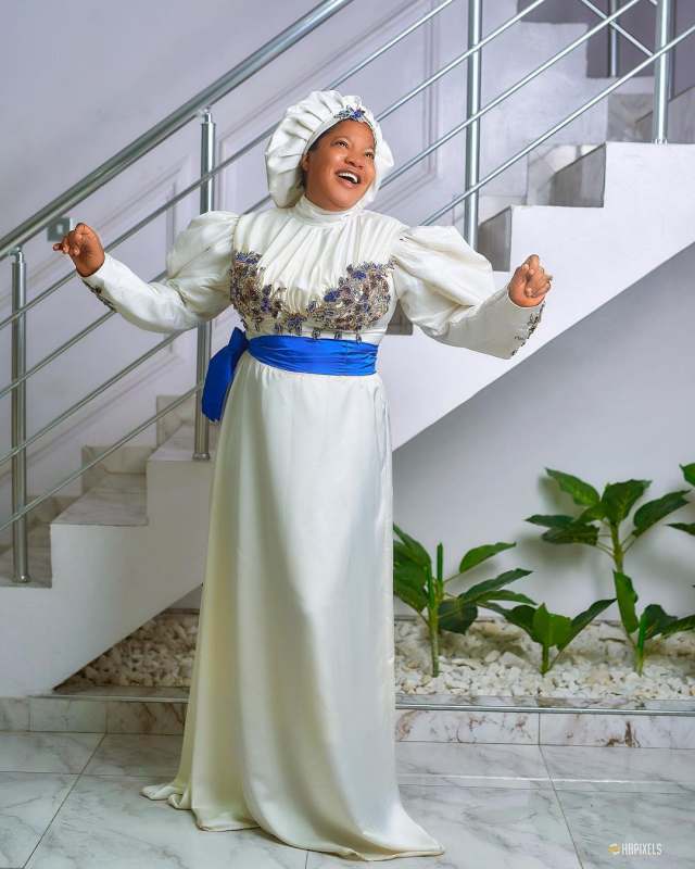 The actress accompanied by a colleague actor, Deyemi Okanlawon, made a wonderful entry alongside her crew in white garments as they sing praises.