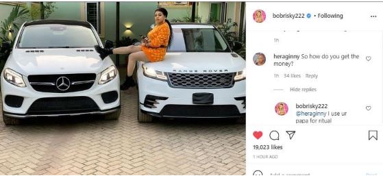 It all started when Bobrisky took to his Instagram page to share a photo of himself, flaunting his cars and bragging about how he has acquired so much for himself.