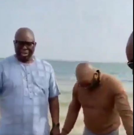 Former governor of Ekiti State, Ayo Fayose, and his family members storm a beach to pray against evil plans for their family. pic.twitter.com/Vf8SR7xOwi