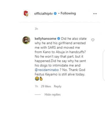 “Did he also state why he and his girlfriend arrested me with SARS and moved me from Kano to Abuja in handcuffs? No, he won’t say that part, but it happened. Did he say why he sent his dogs to intimidate me and @rexidaminabo? No. Thank God Festus Keyamo is still alive today.”