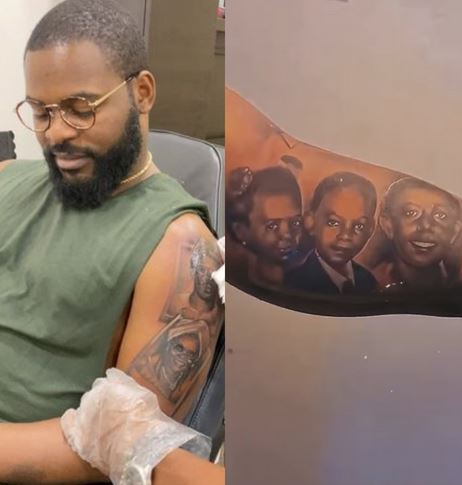 Popular Nigerian singer, Falz, got a tattoos of his family members on his arm.