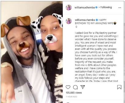 Nollywood actor, Williams Uchemba has showered his wife with kind words on her birthday.