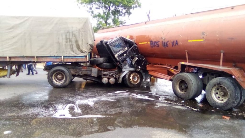 The tanker was involved in a head-on collision with a 33 tyres Mack truck loaded with goods along the Harbour Road in Calabar, Cross Rivers State.