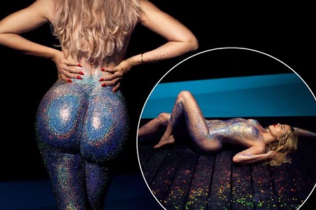 In more pictures shot while the reality star holidayed in St. Barts back in August, Khloe bares even more naked flesh. In one particularly steamy shot, the 31-year-old lies seductively on her back with her cleavage and trim tummy on full display save for sprinkles of colourful glitter painted on her by Kardashians' make-up artist Joyce Bonelli.
