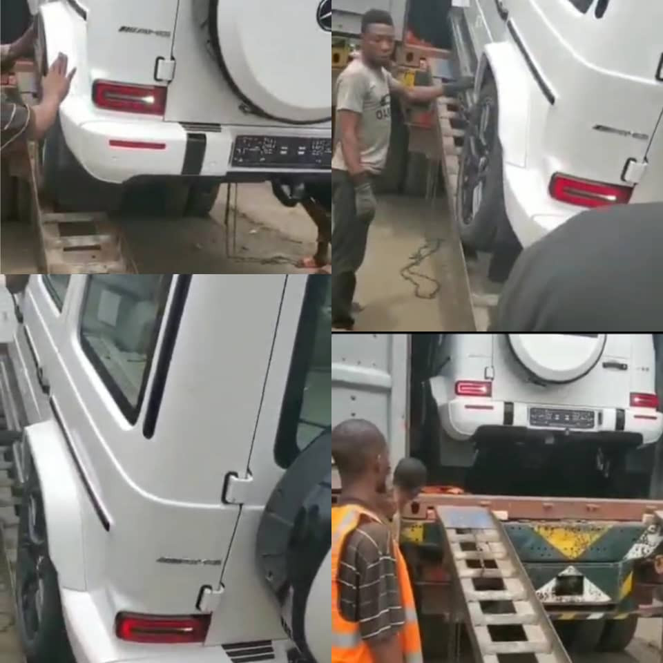 The man was heard begged profusely as a 2021 G-Wagon was being offloaded from a container and this has got Nigerians laughing.