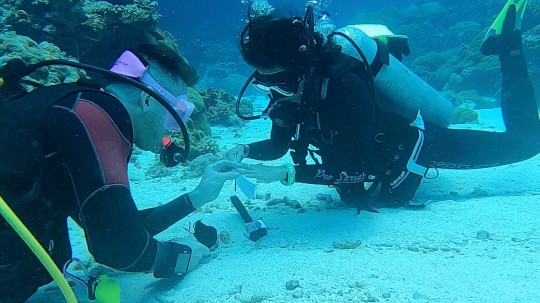 Organising everything with the help of a diving company, he was able to pull out laminated sheets and the ring, attached to a clam shell to stop it floating away, to ask her the question – and happily, the shocked vet nurse said yes. The pair are hoping to finally tie the knot in February next year.