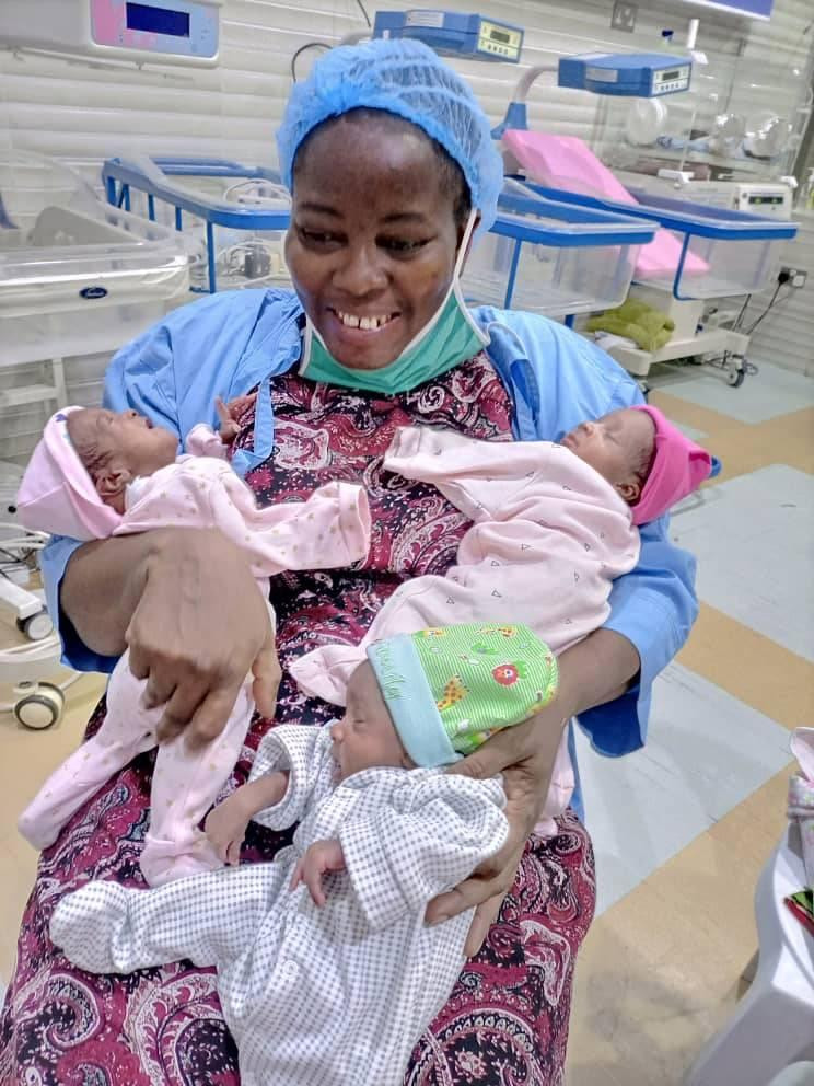 The woman, Helen Ogeah gave birth to the triplets in Asaba, Delta state after several miscarriages.