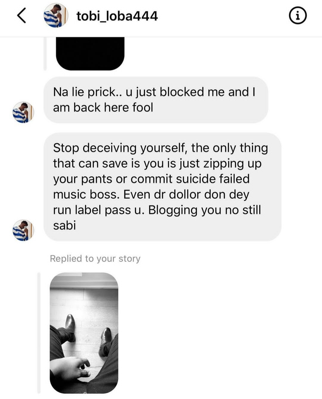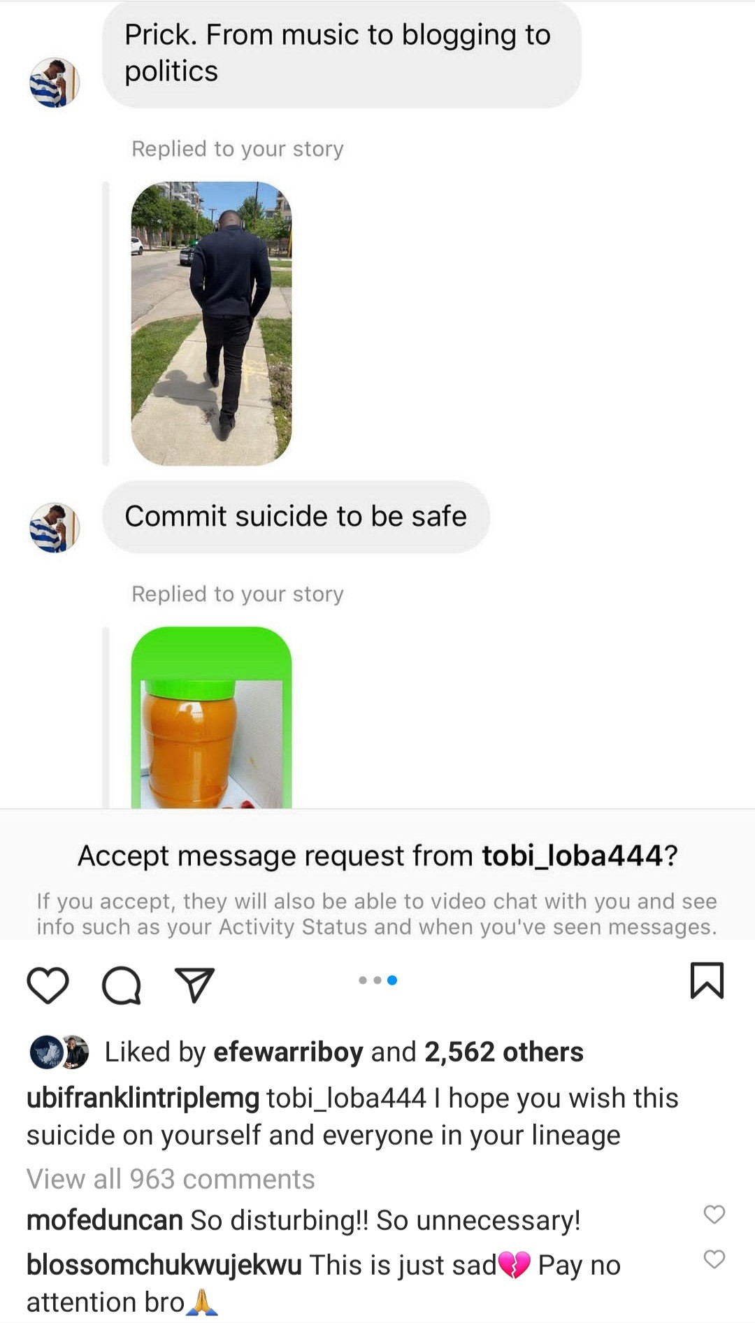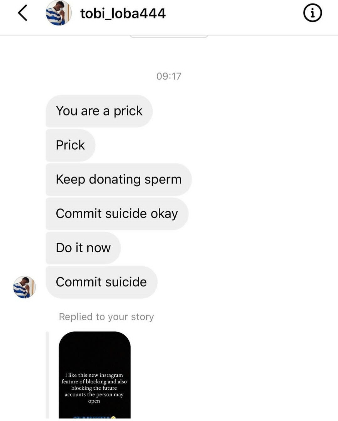 In the midst of it all, a follower went to his instagram DM to tell Ubi multiple times to just commit suicide.