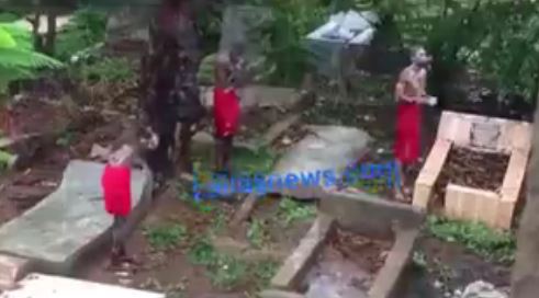 A shocking video has surfaced online showing three young men gathered at a cemetery, dressed in a red towel while taking their bath and chanting incantations.