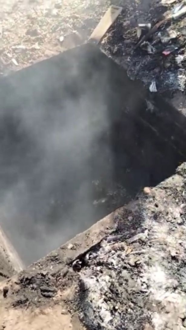 One woman is heard saying: "This is the grave where they burn the bodies and it's still burning."