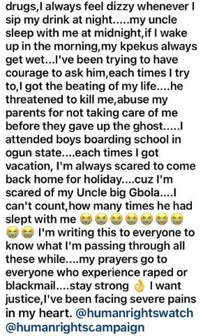 According to the chef identified as Ayo, his uncle has been repeatedly defiling him since he was 11.