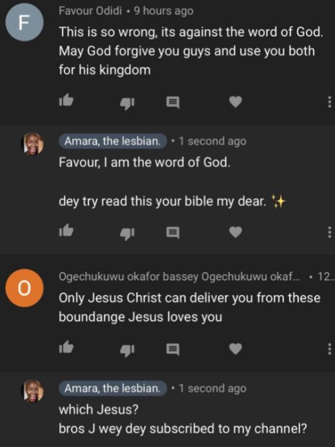 Nigerian lesbian woman, Amara has cried out after allegedly being shamed by Christians.