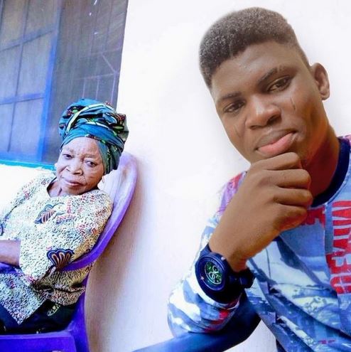 The young man took to Twitter and shared a photo of himself with Iya Gbonkan and introduced her as his grandma.