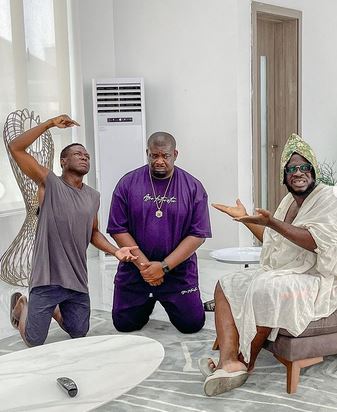 Don Jazzy recently featured on Craze clown’s comedy skit and he posted photo of Don Jazzy kneeling down as part of the comedy.