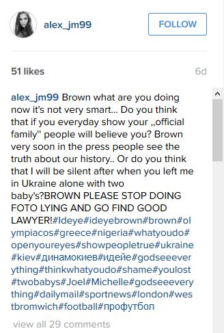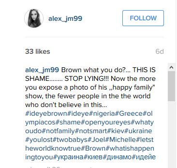 These posts from a white lady named Alex on instagram has stirred up controversy online. The lady who lives in Ukraine has a son and a daughter, who appear to be of mixed race, and she claims Nigerian Super Eagles player, Ideye Brown is the father of her two kids.