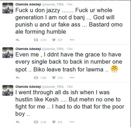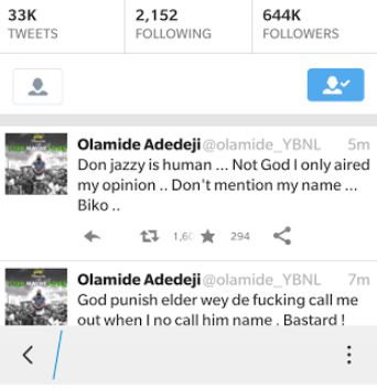 Olamide then took to Twitter to insult the ace producer, Don Jazzy.