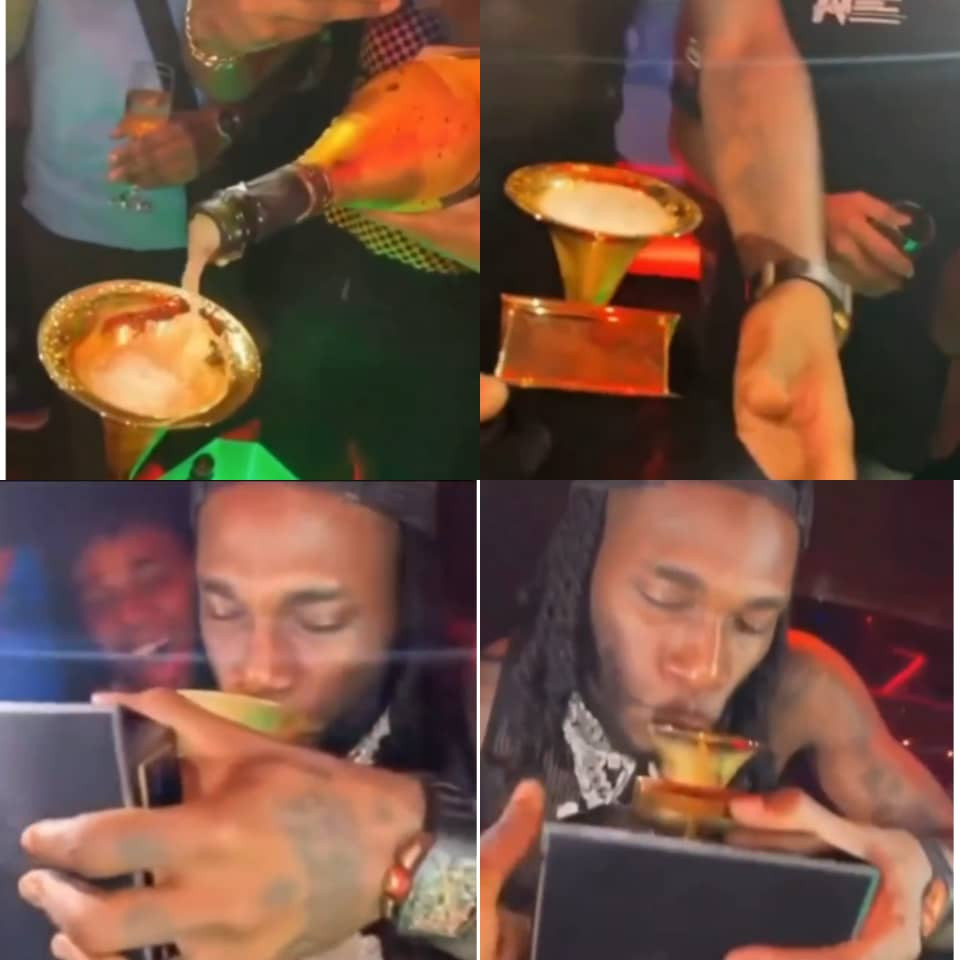 World-famous Nigerian singer, Burna Boy, took his Grammy award plaque to the club last night June 11.