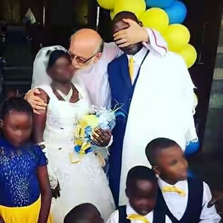 The picture above has shown the moment a priest was spotted planting a kiss on the cheek of a bride while covering the bridegroom's eyes.