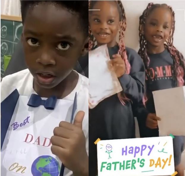 Yesterday, June 20 was Father's day and Nigerian singer, Naira Marley shared a video of his beautiful twin daughters reading their father's day message to him from a card, while Teebillz shared a video of his son, Jamil, thanking him for being a good father.