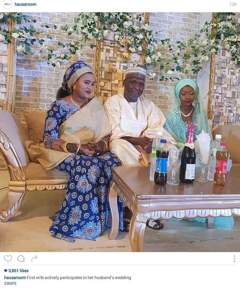 In the photograph, the first wife could be seen sitting with the new couple during their wedding reception somewhere in the northern part of Nigeria.