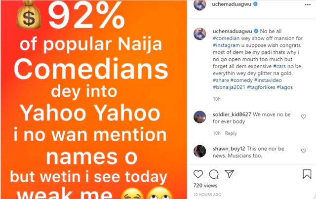 “92% of Popular Naija Comedians Are Into Yahoo Fraud” – Uche Maduagwu