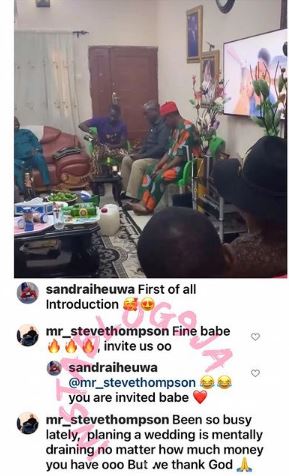 It happened after Sandra successful held a wedding introduction with businessman Steve Chidi.