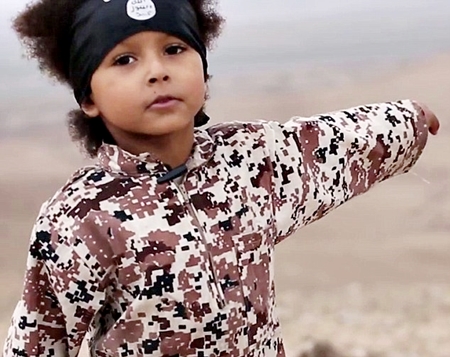The couple have had two children, the oldest being the six year old ISIS child terrorist, dressed in military fatigues and a black bandanna bearing the white mark of ISIS and chillingly declaring that 'We will kill kuffar (non believers).'