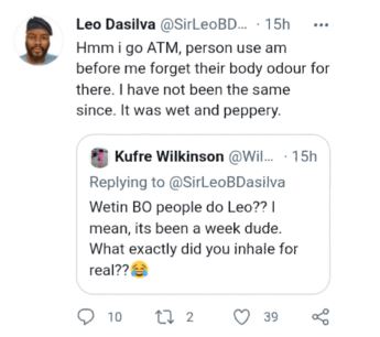When questioned by a follower about who annoyed him with body odour that is making him complain online, he narrated his experience .