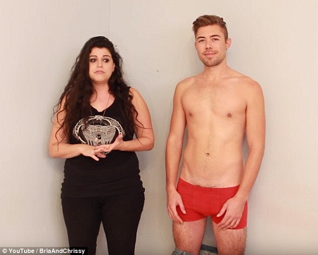 On camera, he stands beside each of the women and takes off a pair of jeans to reveal red boxer briefs underneath, while the ladies all share how they're feeling about the experiment.