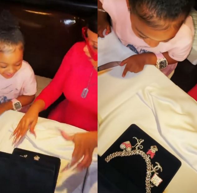 Then, Cardi took to Instagram to share a video of her presenting a blinged-out charm necklace to her daughter, complete with Minnie Mouse charms.