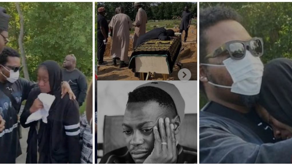 Sound Sultan’s wife, Farida Fasasi, could be seen crying uncontrollably during her husband’s funeral, Olamide was seen trying to console her.