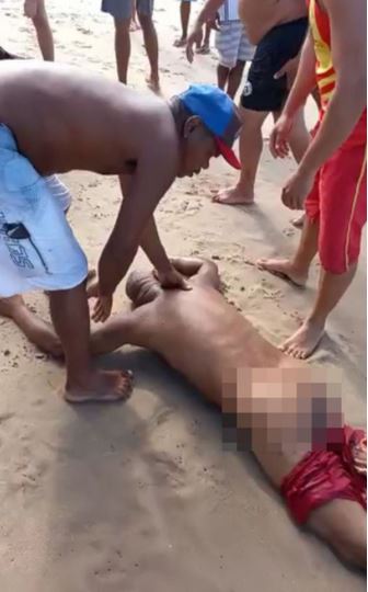 Marcelo's friends brought the victim to shore where he fell to the ground unconscious.