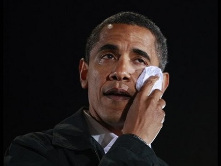 President Barack Obama cries