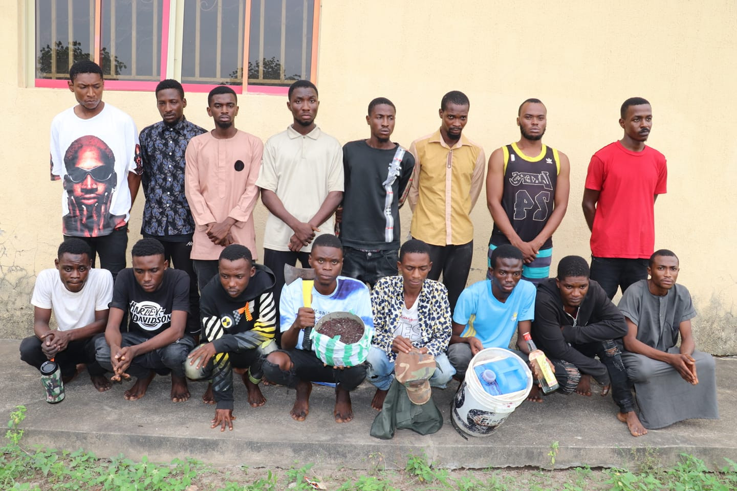 Items recovered during the celebration and initiation ceremony includes, one small axe, one Army trouser, an Army face cap, one pot soaked with dried leaves suspected to be Indian hemp, one fifteen litres jerrican containing concoction suspected to have been mixed with illicit drugs, two bottles of castello alcoholic drink, one MP3 radio player.